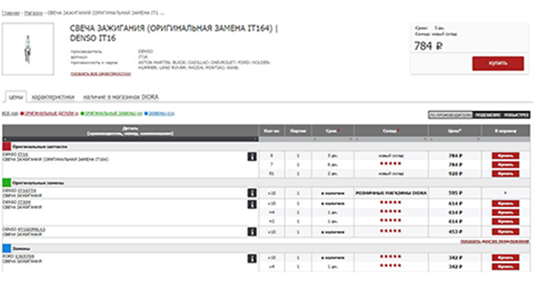 В результатах поиска вы увидите искомую запчасть, а также: