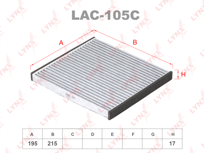 ФИЛЬТР САЛОННЫЙ УГОЛЬНЫЙ HYUNDAI SOLARIS 10-12, KIA RIO 11-12, TOYOTA RAV 4 01-/YARIS 99-/PRIUS 00-0 LYNX LAC105C