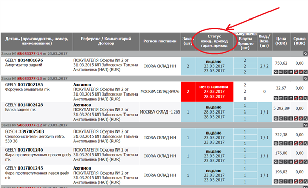 | 3 | Подтверждено поставщиком (new) | Поставщик подтвердил наличие товара |