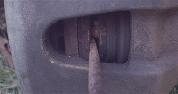 - С помощью отвертки подденьте поршень и отодвиньте в сторону до конца, возможно придется приложить усилие