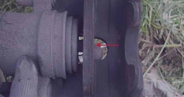 - Снимите заглушки с задней части суппорта, верхнюю и нижнюю