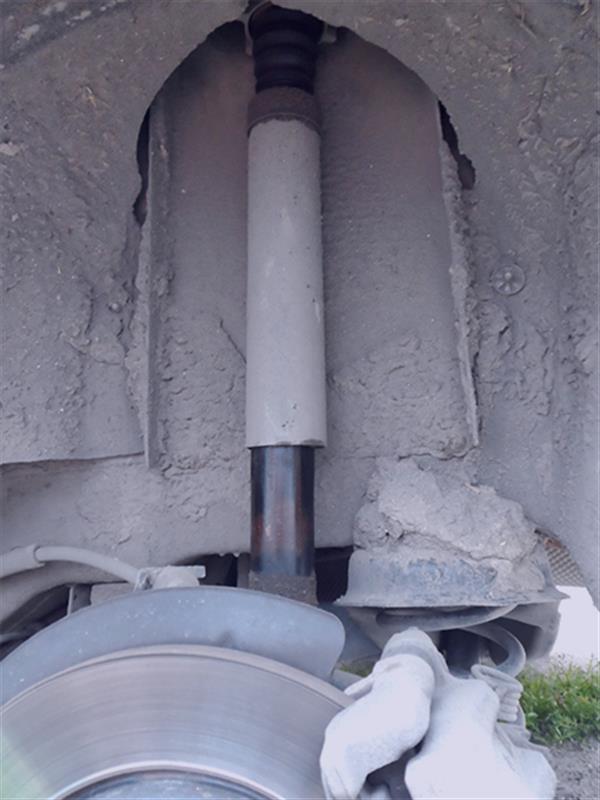1. Снимите заднее колеса с необходимой стороны для получения доступа к амортизатору.