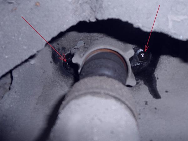 3. Открутите два болта, крепящих кронштейн амортизатора с помощью головки "на 10".